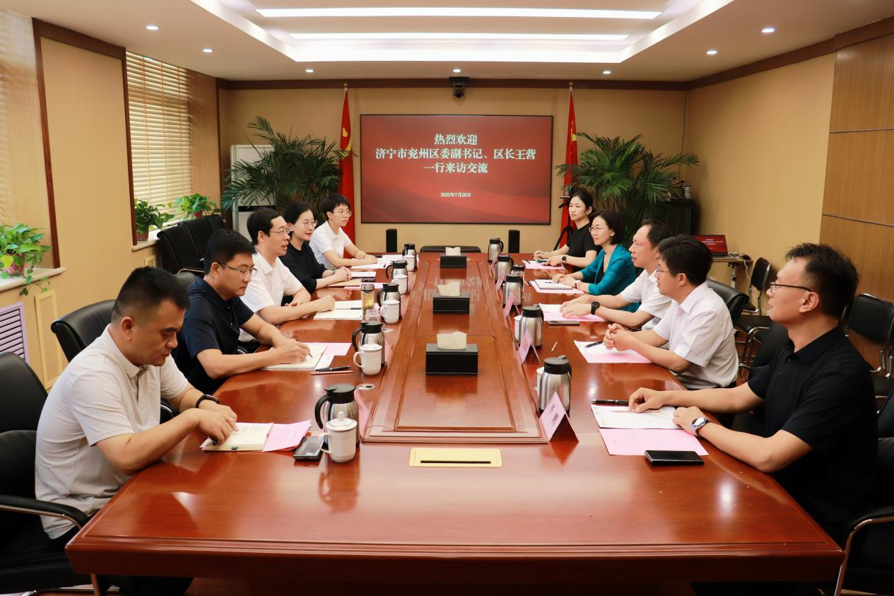 7月28日,濟寧市兗州區委副書記、區長王營一行到山東文旅集團座談交流,集團黨委書記、董事長丁藝,黨委副書記、董事、總經理門家春會見。