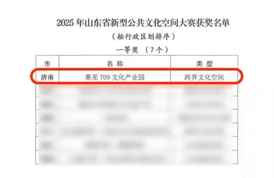 近日,山東省文化和旅游廳公布了2025年山東省新型公共文化空間大賽獲獎(jiǎng)名單,山東文旅山鄉(xiāng)集團(tuán)運(yùn)營打造的709文化產(chǎn)業(yè)園榮獲一等獎(jiǎng)。