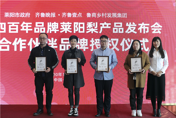 11月4日,山東省國欣文化旅游發展集團旗下魯商鄉村發展集團(簡稱“鄉發展”)、齊魯晚報·齊魯壹點與萊陽市照旺莊鎮政府在萊陽舉行“旺沙四百年”萊陽梨產品發布會暨合作伙伴品牌授權儀式。大眾報業集團社委委員、齊魯報系黨總支書記、齊魯晚報總經理張天衛,鄉發展外部董事、財務總監王蘇洲,萊陽市照旺莊鎮黨委書記李志軍等出席活動。
