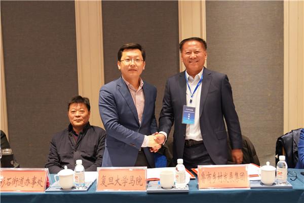魯商鄉村發展集團有限公司(簡稱鄉發展)作為山東鄉村振興企業的唯一代表參加論壇,作了題為《強產業 筑平臺 建樣板 促振興》的發言,并在論壇啟動的“鄉村振興牽手計劃”中,與復旦大學馬克思主義學院“牽手”,共建鄉村振興實踐研究基地。復旦大學馬克思主義學院院長李冉、鄉發展總經理曲勇代表雙方簽署了合作協議。復旦大學馬克思主義學院將在鄉發展泰山·九女峰鄉村度假區八樓村、里峪村設立“復旦大學鄉村振興齊魯實踐研究基地”,開展鄉村振興經驗研究,并為齊魯樣板建設提供技術與智力支持,協同開展理論宣講與干部培訓,共同打造鄉村振興品牌。