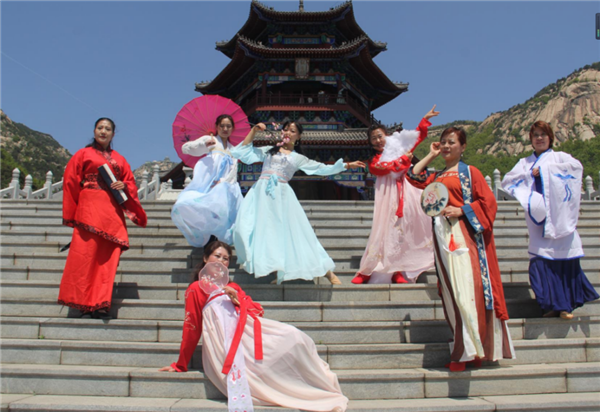 天蒙山上的望海樓、玉皇宮等景點,雕花圍檐,回廊連環,成為漢服愛好者心中理想的巡游地和拍攝地。“洛裳華服·新秀大賽、仙子游·山河戀演藝、裳國風·品國潮漢服展”等系列活動,讓游客們在欣賞了沂蒙山壯美風光、享受逍遙山水間愜意之余,置身于唯美的漢唐風韻之中。