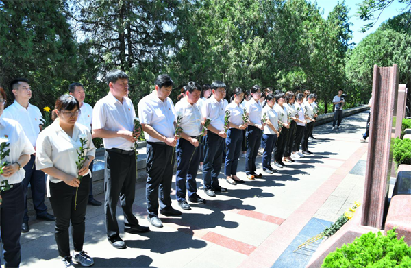 在濟(jì)南革命烈士陵園,大家挺身肅立,面向王盡美烈士墓碑鞠躬行禮,并敬獻(xiàn)鮮花,表達(dá)對(duì)革命先烈的追思與敬意。