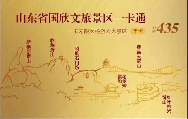 2021年7月,山東文旅景區集團整合旗下費縣天蒙山、臨朐沂山、石門坊、老龍灣、新泰新甫山、博山紅葉柿巖等六家優質景區資源,推出了“山東省國欣文旅景區”一卡通,原價435元,惠民價198元,游客一年內可以無限次進入六大景區。