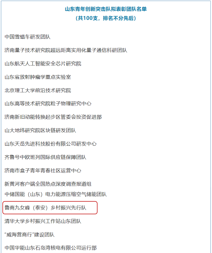山鄉(xiāng)集團(tuán)九女峰(泰安)鄉(xiāng)村振興先行隊(duì)榮獲“山東青年創(chuàng)新突擊隊(duì)”稱號(hào)