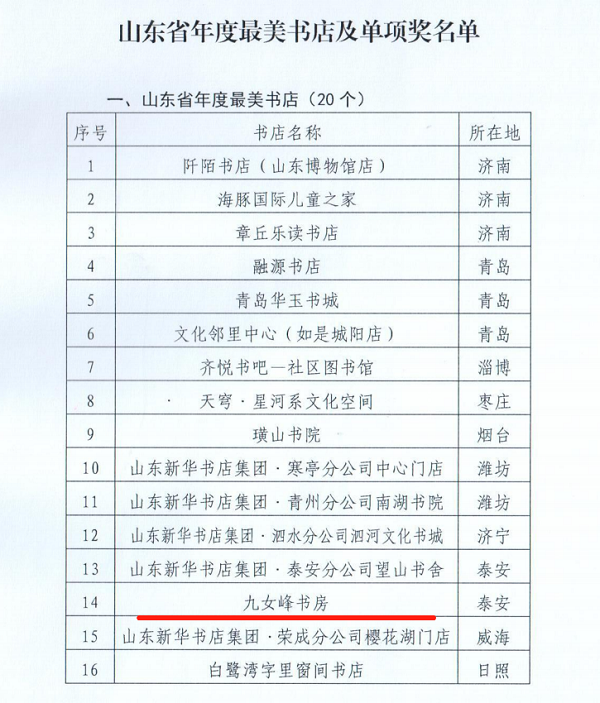近日,山東省委宣傳部公示2022年度山東省年度最美書店及單項獎名單,九女峰書房獲評山東省年度最美書店。此次評選活動旨在進一步促進實體書店發(fā)展,提升實體書店品牌影響力。