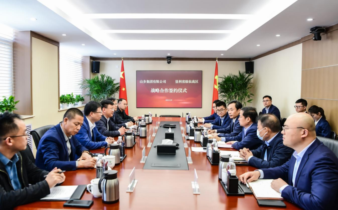 3月29日,山鄉(xiāng)集團(tuán)與墾利省級(jí)農(nóng)業(yè)高新技術(shù)產(chǎn)業(yè)開(kāi)發(fā)區(qū)(簡(jiǎn)稱”墾利省級(jí)農(nóng)高區(qū)“)在濟(jì)南舉行戰(zhàn)略合作簽約儀式。墾利省級(jí)農(nóng)高區(qū)黨工委副書記、東營(yíng)市現(xiàn)代漁業(yè)發(fā)展服務(wù)中心(紅光)黨工委副書記、紅光漁業(yè)辦事處主任繆曉輝,山東文旅集團(tuán)首席戰(zhàn)略官、山鄉(xiāng)集團(tuán)黨委書記、董事長(zhǎng)張建峰參加活動(dòng),山鄉(xiāng)集團(tuán)黨委委員、工會(huì)主席于在武主持。
